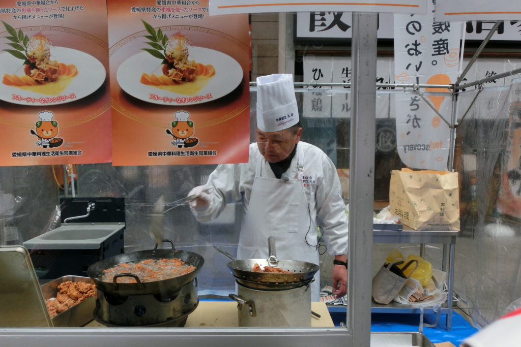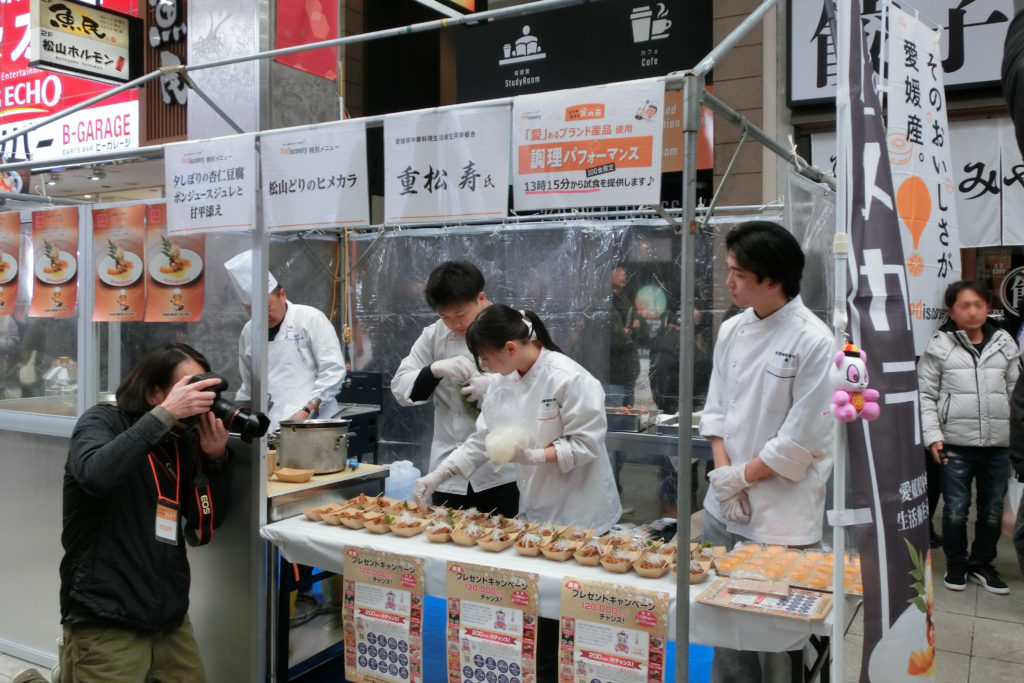 1月31日土曜日、松山市大街道で開催された愛媛県フードマルシェ【えひめ愛ある食の市】に“ヒメカラ”試食のブースを出店させていただきました。
